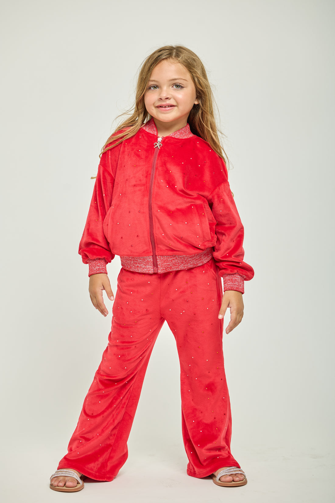 Pre-Order Red Sparkle Plush Jacket & Bellbottom Set