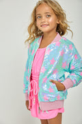 Get ready to sparkle in style with the Hot Pink Star Flip Sequin Bomber Jacket from Dollfaced Kids! This jacket is all about fun, glam, and ultimate comfort, making it a must-have for any little fashionista.
