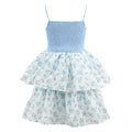 The Blue Belle Bow Ruffle Dress is a dreamy statement piece designed for twirls and special moments. Featuring a gorgeous white and blue floral ruffle skirt, this dress brings soft romance and movement to every step, accented with delicate rhinestone details for just the right touch of sparkle.