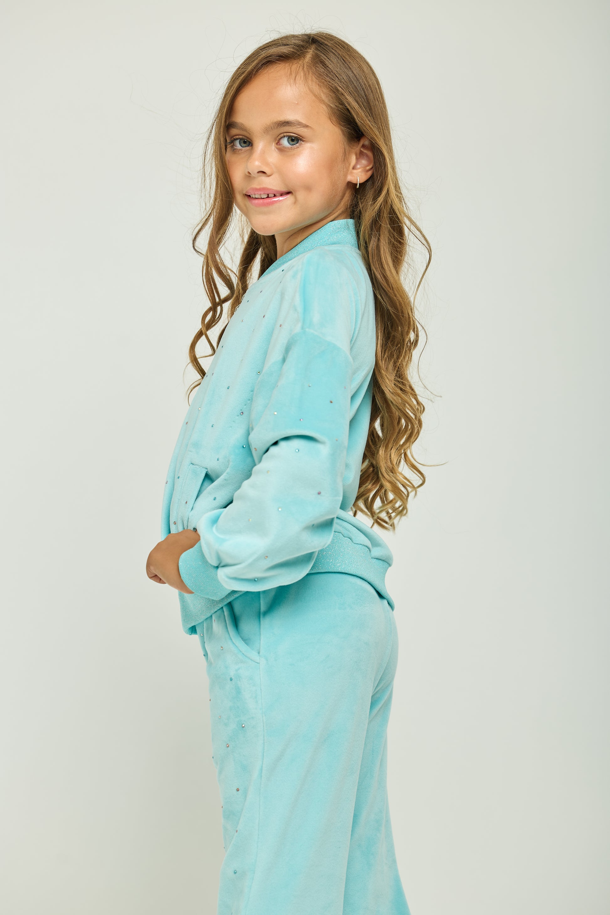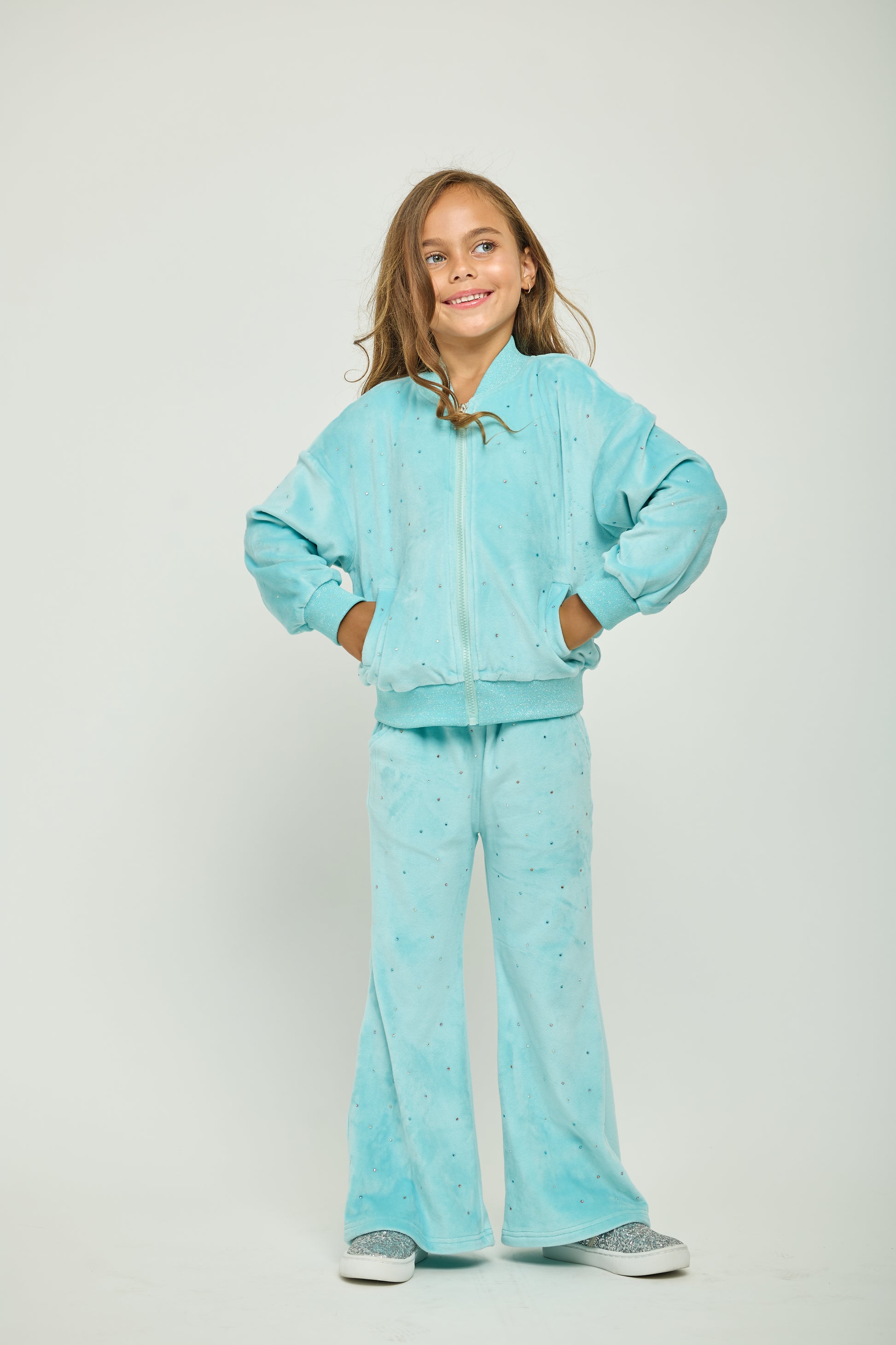 Teal Sparkle Plush Jacket & Bellbottom Jogger Set