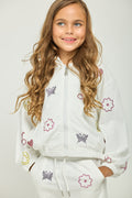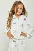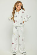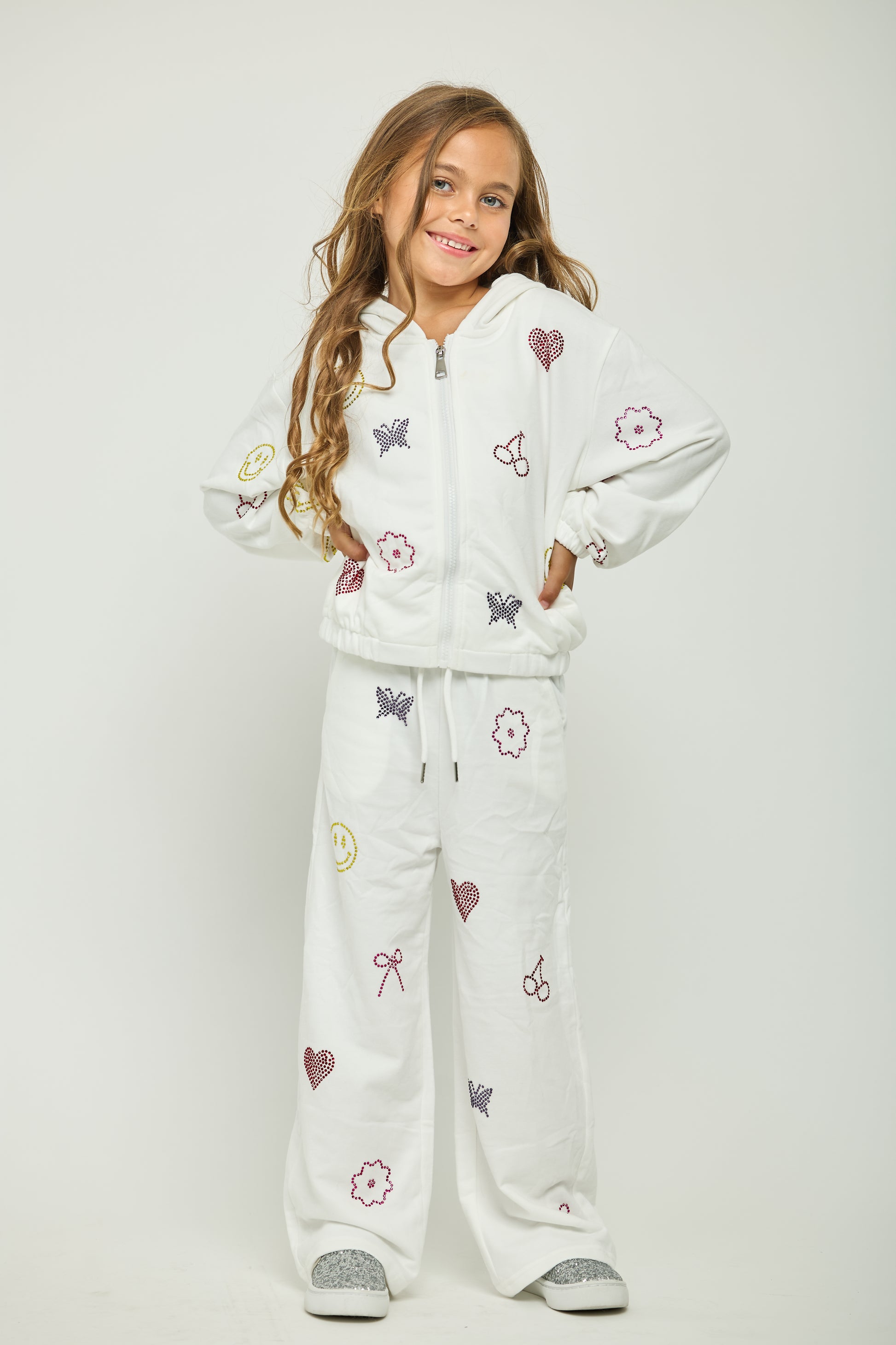 The zip-up hoodie offers comfort and chic style, while the wide-leg pants are cut long for that modern, elevated fit. Perfect for matching moments with your mini, or for a standout look all on its own, this set blends cozy wearability with dazzling detail.